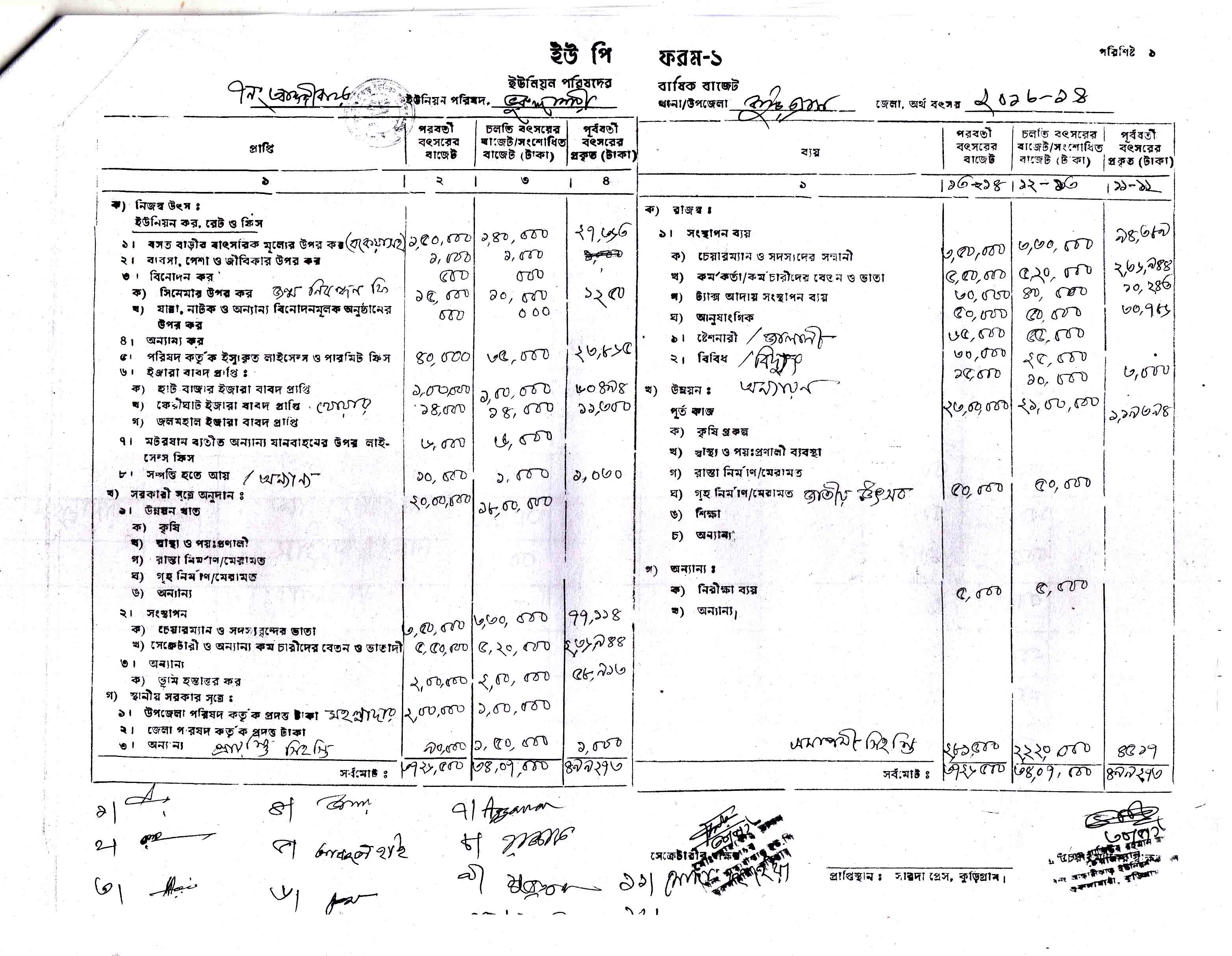 ৭নং আন্ধারীঝাড় ইউনিয়ন পরিষদে বার্ষিক বাজেট ২০১৩-২০১৪।